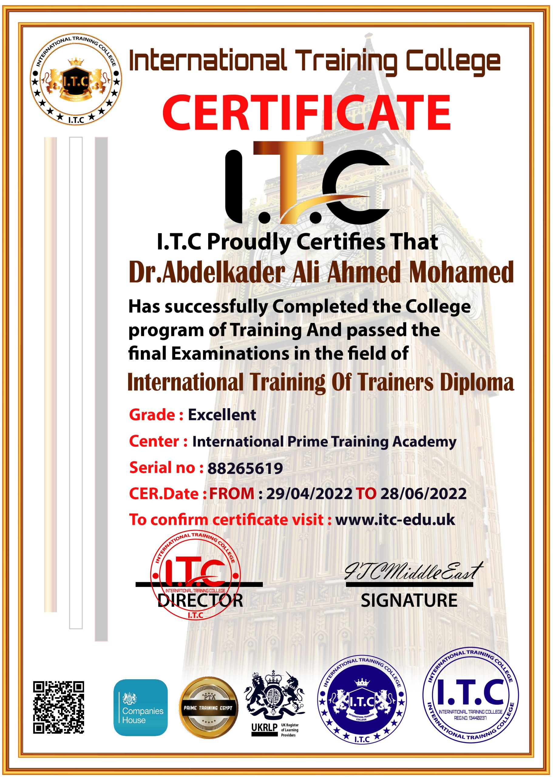 | Center | International Training Prime Academy |
